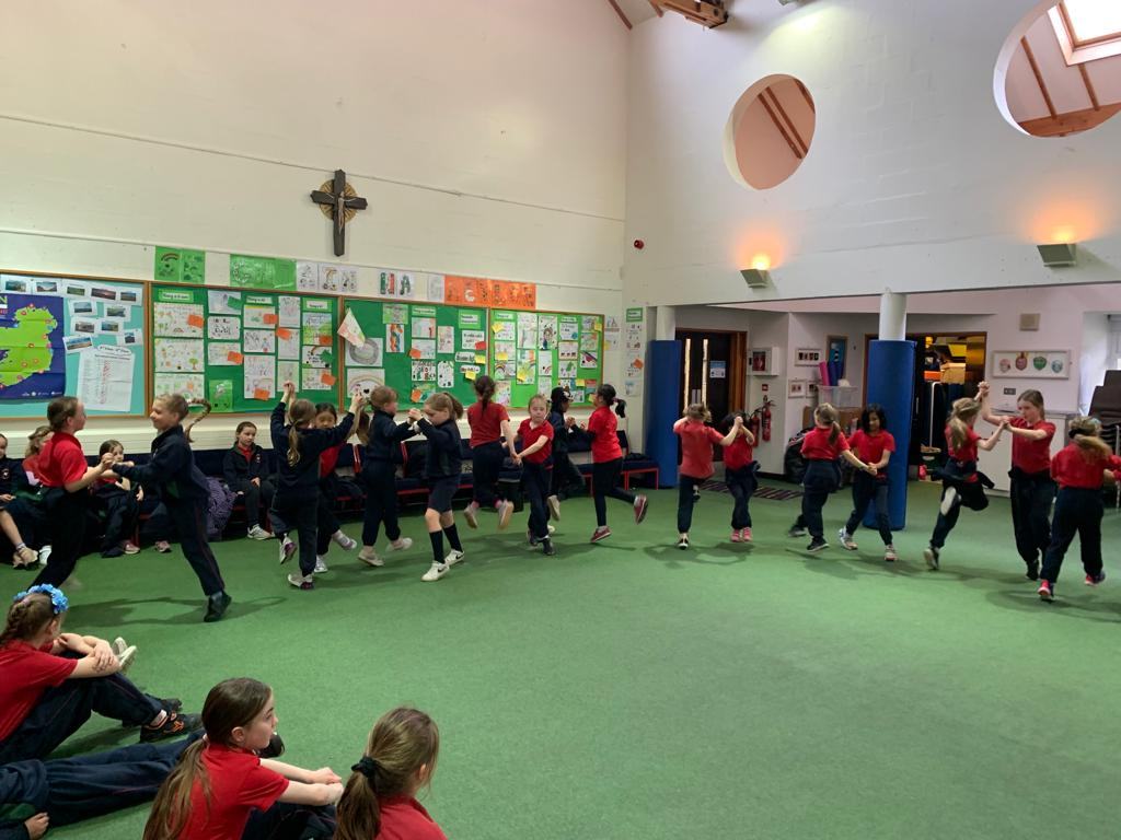 As part of the Active School initiative, the staff decided to prioritise the dance strand for the duration of the year. It was decided that dance would be incorporated into as many whole-school events as possible. It was also decided that traditional Irish dances would be taught in the lead up to Seachtain na Gaeilge. This can be seen in the ‘Physical Activity’ section.