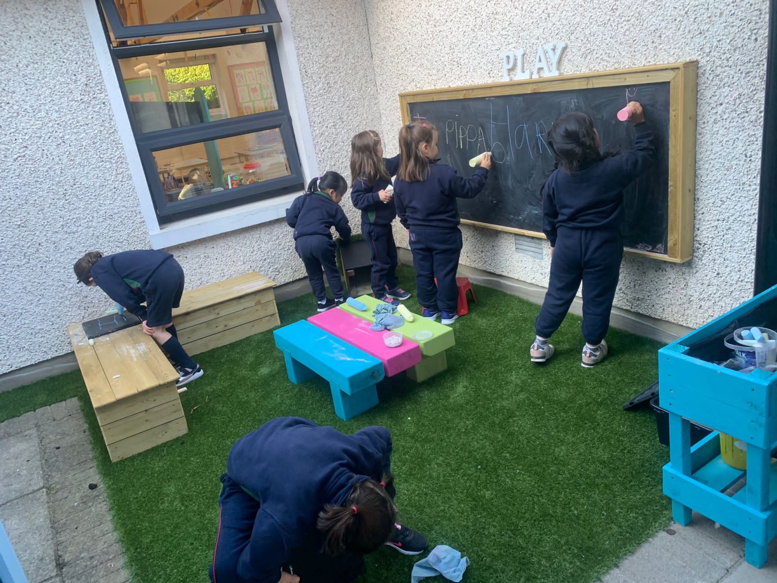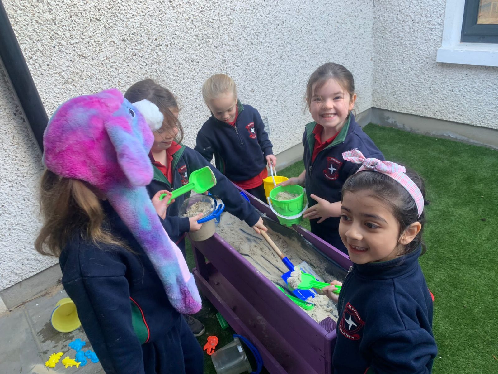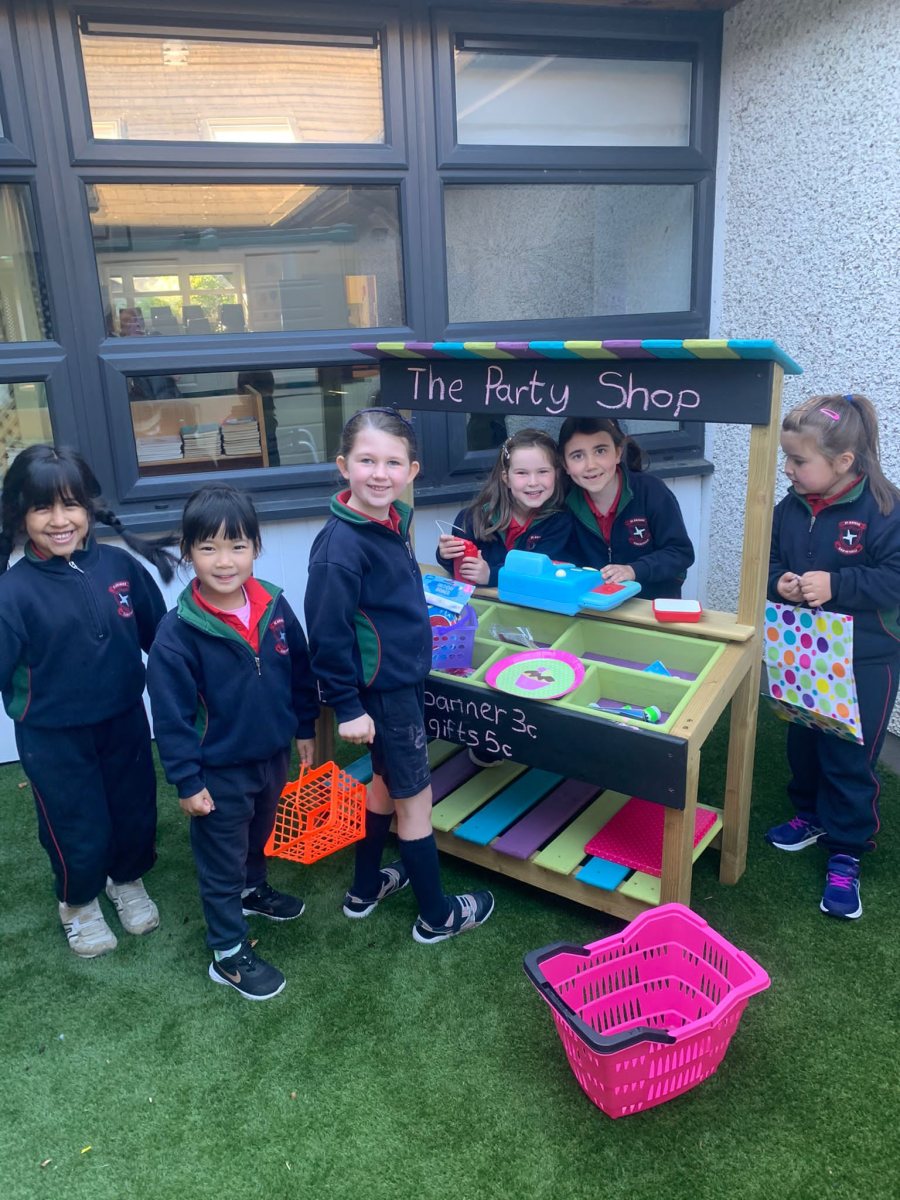 There was a wonderful welcome to the new outdoor infant play area! The area was tidied and paved over the summer. New equipment was bought and installed by teachers and our caretaker. The infant classes can now learn and play outside and let their imaginations soar!