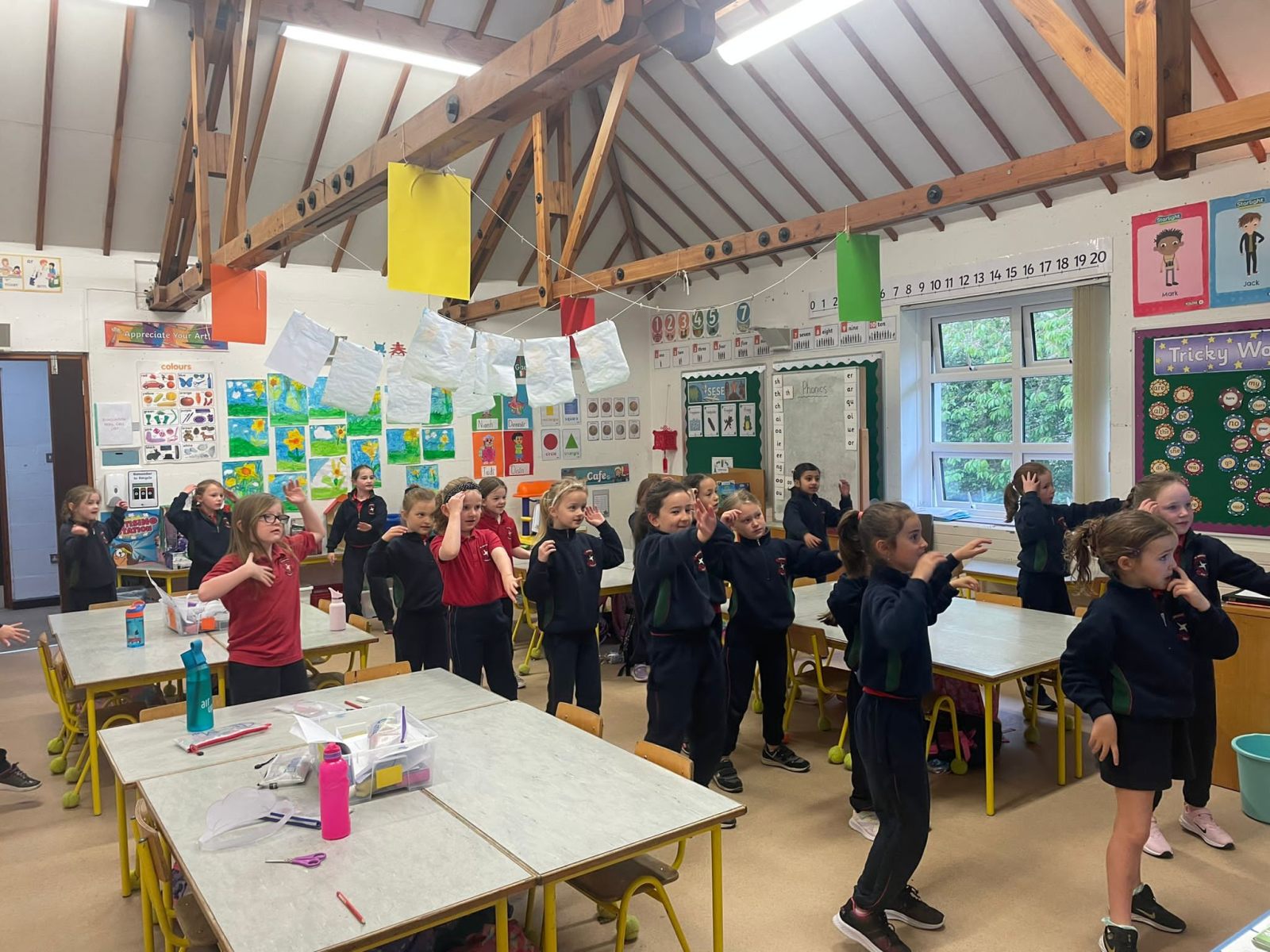The importance of physical activity was a main element of Mental Health Awareness Week in October. The girls tried their hand at yoga. Children engaged with the outdoors and came together for a whole school dance in the yard.