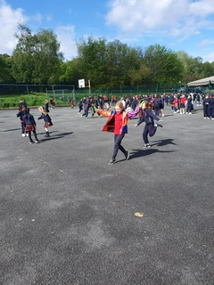 As a school, we enjoy being active as often as possible. Girls enjoy playing and running about the yard during the breaktimes and teaching other new games. Below you will see the different ways we have stayed active and the different challenges the school took as part of the Active Flag journey.